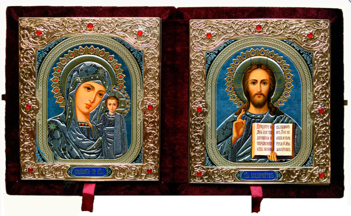 • Икона-складень в бархате красная 010
