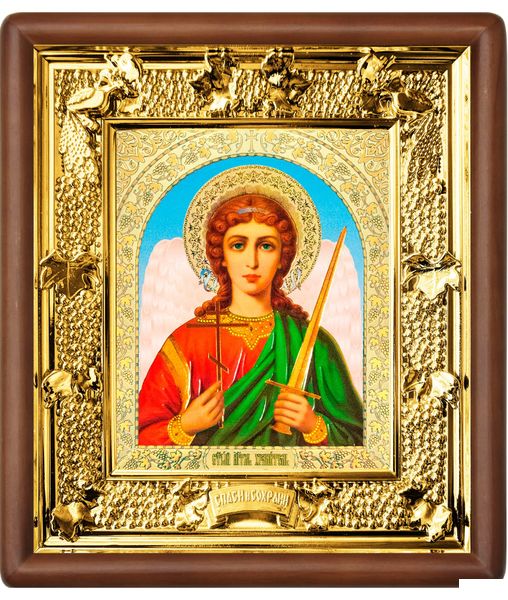 Икона Святой Ангел Хранитель 31-П-2 24х27 см деревянный прямой киот, лик 15х18 арочный поясной Софрино, оклад (риза) золото.