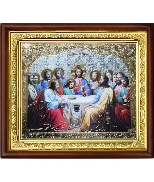 Икона Тайная вечеря 23-П-89 25х29 см деревянный прямой киот, лик 20х24, оклад (риза) золото