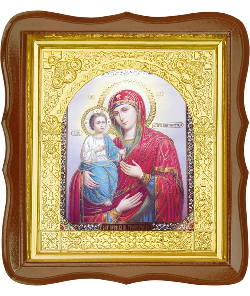 Икона Троеручица 17-ФС-186 26х29 см деревянный фигурный светлый киот, лик 15х18, оклад (риза) золото