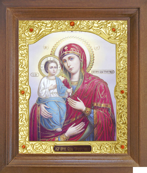 Икона Троеручица 26-П-186 17х20 см деревянный прямой киот, лик 15х18, оклад (риза) золото