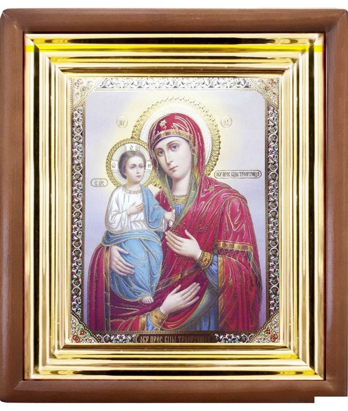 Икона Троеручица 27-П-186 22х25 см деревянный прямой киот, лик 15х18, оклад (риза) золото