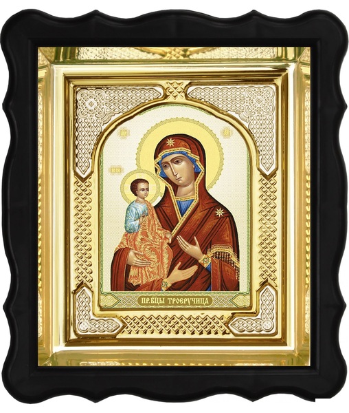 Икона Троеручица 3-ФП-59 17х19 см фигурный пластиковый киот, лик 10х12 Тропарь, оклад (риза) золото.