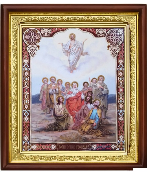 Икона Вознесение Господне 23-П-75 ( Двунадесятые праздники ) 25х29 см деревянный прямой киот, лик 20х24, оклад (риза) золото