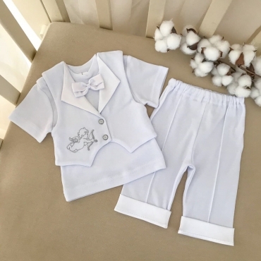 - кофта з коротким рукавом; - жилетка на кнопочках; - штани зі стрілками та манжетами.Рекомендації по догляду::