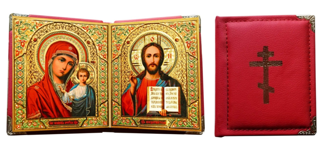 Кожанная книжка, лик  10х12 см Софрино Узор не вынимающийся,                               22х14х2 см