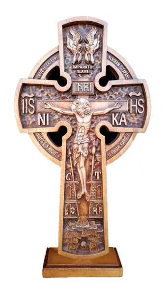 Крест резной RUM с кругомD на подставке8004