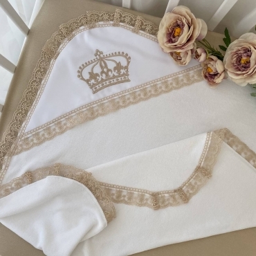 Виготовляється із високоякісної подвійної махри у білому та молочному кольорах. Приємна на дотик та дуже м’яка тканина, 100% бавовна. Крижма гіпоалергенна, тепла та гігроскопічна, отже гарно вбиратиме вологу та зігріватиме малюка після купелі.розмір: