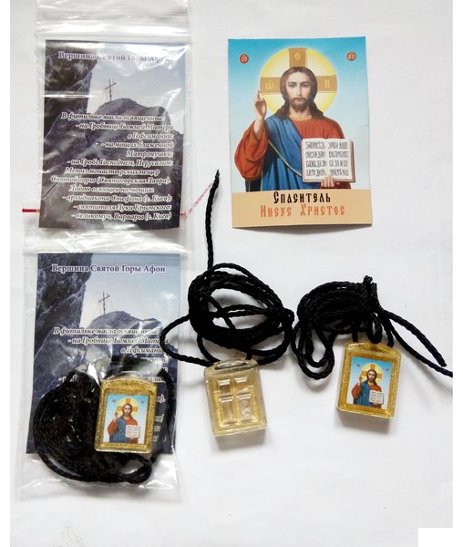 Ладанка четырёхчастная Спаситель с нитью ЛАД-С