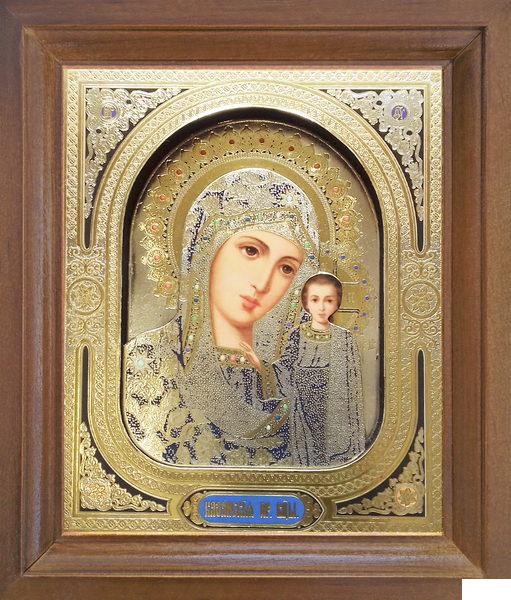 Прямой деревянный киот размером 120х140х25 мм,со стеклом с ОБЬЕМНЫМ  3 Д ликом 10х12см