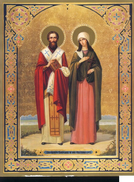 Широкоформатная икона Киприан и Иустина /Код ipb026