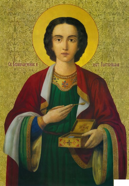 Широкоформатная икона Пантелеимон Великомученик /Код ipb031