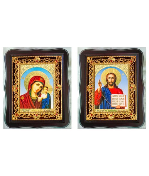 16х18,5 см деревянный фигурный киот, лик 10х12 Софрино арочный, оклад (риза) золото