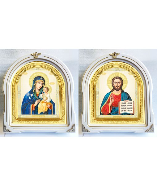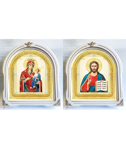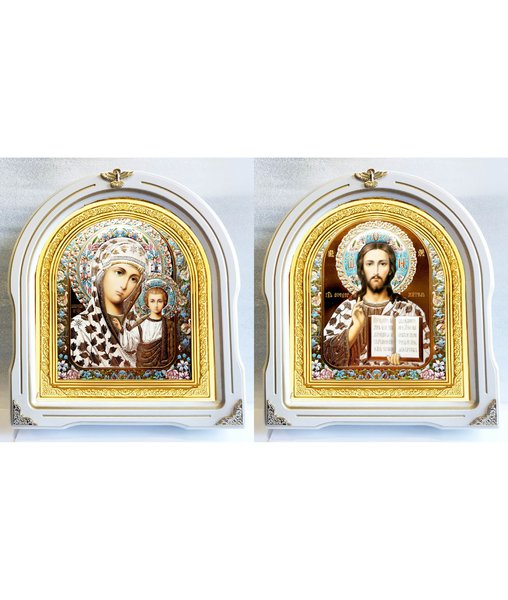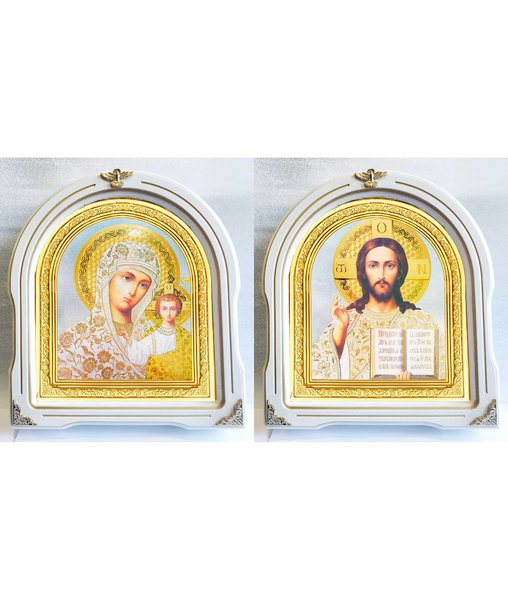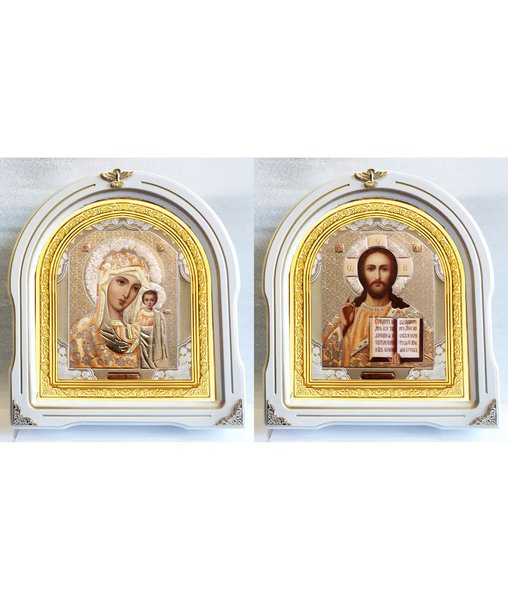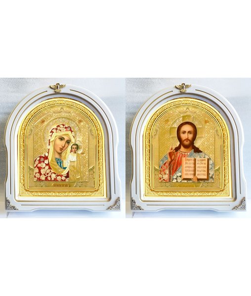 26в подарочной упаковке 26х29 см деревянный арочный киот, лик 15х18 Греция, оклад (риза) золото