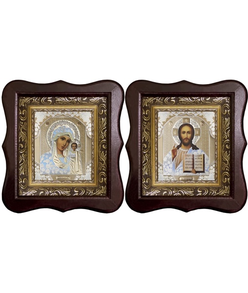1. 17х20 см деревянный фигурный киот, лик 10х12 Софрино белая одежда, оклад (риза) золото