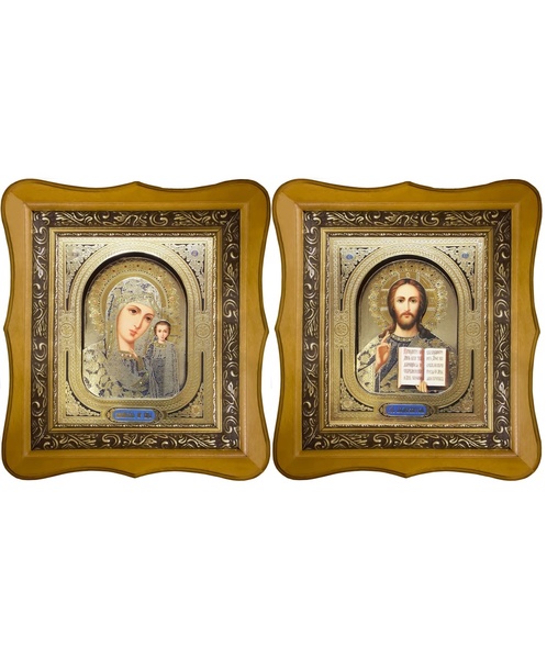 1.24х27 см деревянный фигурный киот, лик 3d 15х18 Софрино узор, оклад (риза) золото