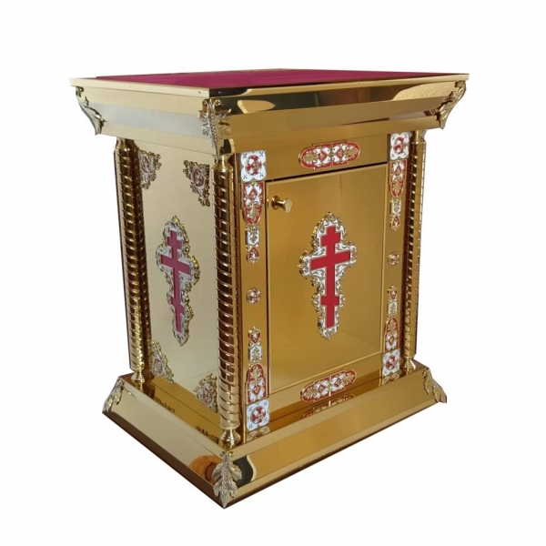 • Основа жертовника - вологостійка фанера. • Метал - булат (нержавіюча сталь із напиленням нітриду титану). • Кришка — оксамит (меблева тканина).Розмер :