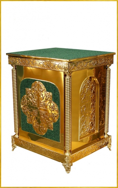 розміри (Д х Ш х В): 75 х 85 х 105 см; чеканка; метал - булат (нержавіюча сталь з напиленням нітриду титану); розбірний; кришка — оксамит (меблева тканина); основа жертовника — ДСП; литі ніжки.Нет описания